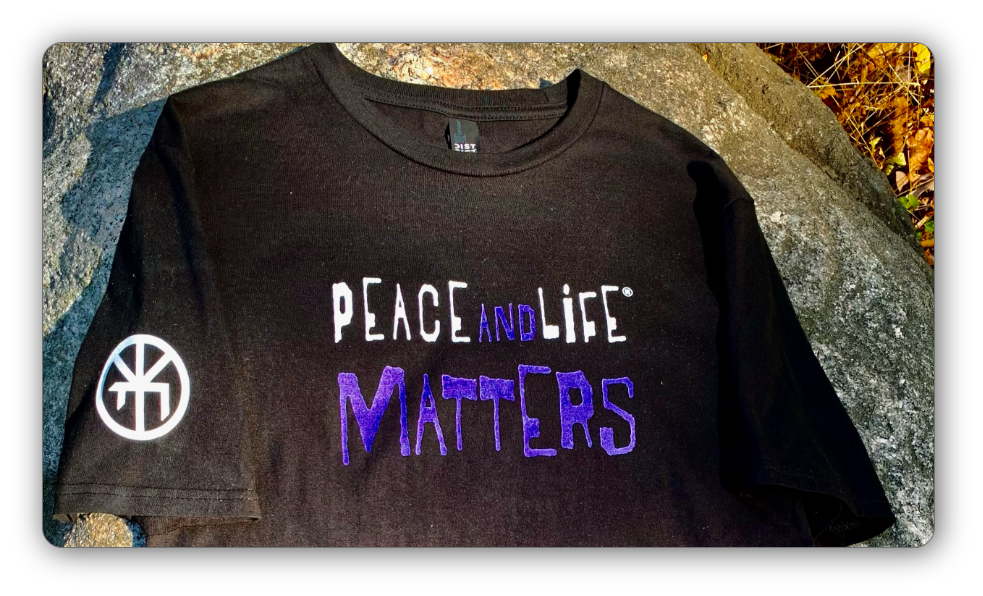 Wear our newest T-shirt – PEACE AND LIFE® MATTERS. Today, more than ever, this message is for the person wearing it and the global family who recognizes the symbol as a reminder that one believer in peace and respect for every life can make a very powerful impact on the world. PEACE AND LIFE® MATTERS